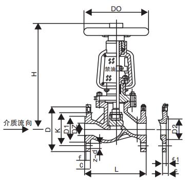 YJ41W Special Oxygen Globe Valve main dimensions: