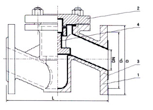 1, the valve body, 2, valve cover 3, the valve body lining 4, the main dimensions of the valve