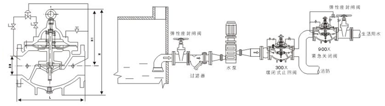 900X emergency shut-off valve is used for fire water and domestic water in parallel with the water supply system, used to deploy the water supply direction of the valve. When the fire broke out, the fire was in urgent need of a lot of water, immediately cut off the domestic water, to ensure adequate fire water; when the fire water pressure to stop reducing, the valve automatically opens, was normally open to resume living water supply. The valve so that the system does not require a separate fire special water supply pipe network, greatly reducing construction costs and water consumption. Valve control of high sensitivity, safe, reliable, easy commissioning, long service life.