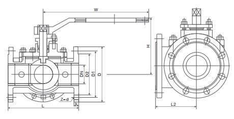 四、Q644F氣動(dòng)三通球閥主要外形尺寸